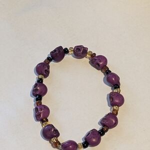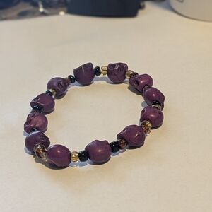 Add a bold touch to your style with this purple skull beaded bracelet. Perfect for making a statement and Halloween.