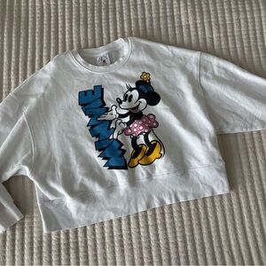 Charming Disney sweatshirt with Minnie Mouse graphic. Features bold blue lettering and a playful design. Ideal for everyday fun.