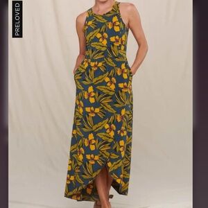 Toad&Co Sunkissed Dress in midnight Blue and Yellow Floral Size small