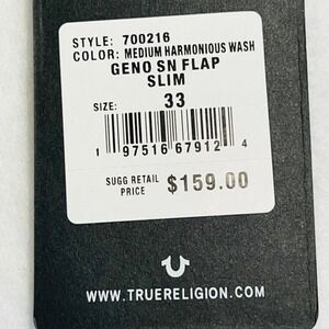 True Religion Men's Geno Relaxed SN Flap Slim Fit Blue Denim Jeans 33x32 NWT