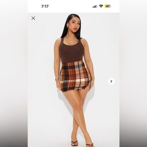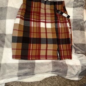 Fashion Nova Burgundy and Brown Plaid Mini Skirt