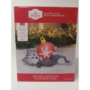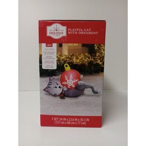 Holiday Time 30 in Playful Cat with Ornament Christmas Airblown Inflatable NEW. Condition is New. Shipped with FedEx Ground Economy.