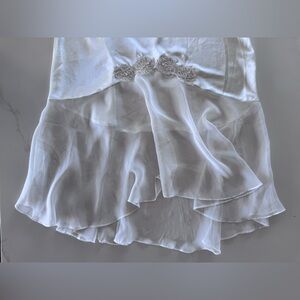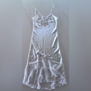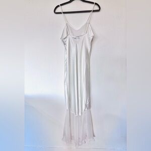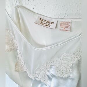 Gorgeous satin and lace slip dress embroidered with pearls, and sheer mermaid hem. Victoria’s Secret vintage gold label, excellent condition! Measures approx 56 inches shoulder to hem, 17.5 inches pit to pit, 15.5 inches across waist.