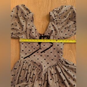 Sofie the Label, Hello Molly, Bows of Enchantment Dress, bow print dress, puff sleeve mini, cottagecore dress, coquette dress, brown mini dress, fall dress, NWT boutique dress