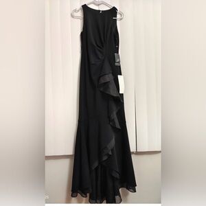 Adrianna Papell Women's Ruffle Crepe Halter Gown Size 0 Black New with tag