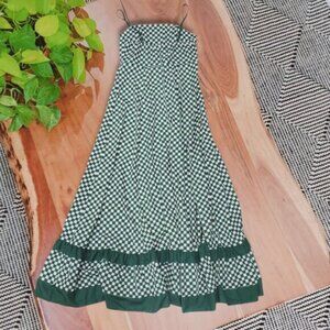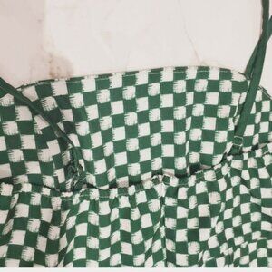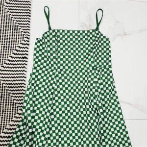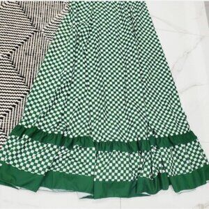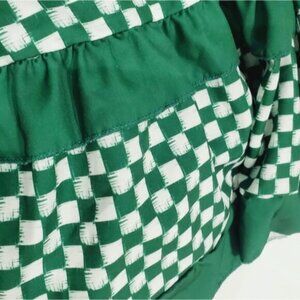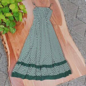 Green/White Checkmate Checkered Maxi Pleated Dress