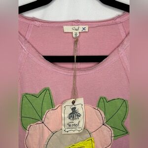 Easel Pink Flower Patch T-shirt Oversized Mineral Wash Bohemian Sz 1X