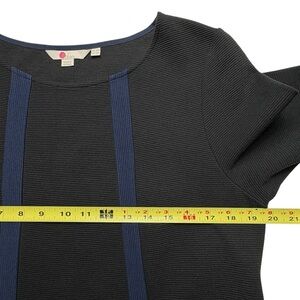 Boden Ottoman Dress Size 12 Black Blue Striped Mini Shift 3/4 Sleeve Ribbed Knit