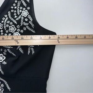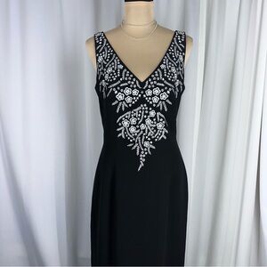 Maggy London Sleeveless Maxi Dress Size 8 Black Floral Embroidery High Slit EUC