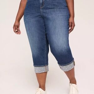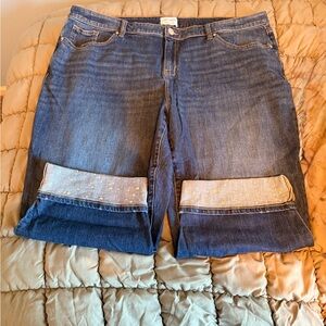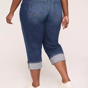 #BoyfriendCapri #PlusSizeDenim #RhinestoneCuffs #CasualChic #FlexMagicWaistband #EUC #DarkDenim #ComfortStretch #PlusSizeStyle #CapriJeans #WardrobeStaple #SparkleDetails #AllDayComfort #Size24