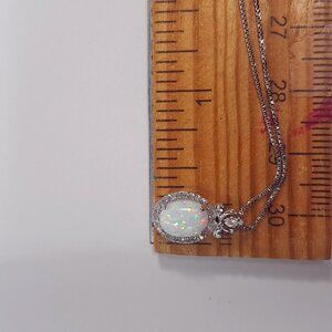 Brand new never worn. Enchanted Disney Fine Jewelry Sterling Silver with 1/10 CTTW Diamond and Created Opal Cinderella Pendant Necklace.