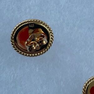 This is a beautiful pair of vintage 14k (marked) cameo stud earrings in their original box. The earrings are about .5 inch by .3 inch and together weigh 1.48g.