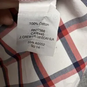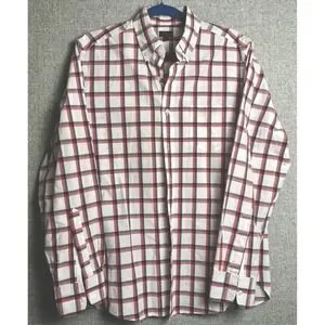 J. Crew Mens Shirt Red White Blue Button Down Long Sleeve Slim Fit Check MEDIUM