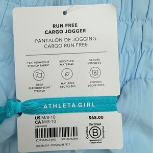 NWT Athleta Girls Run Free Cargo Jogger - size 8/10 - light blue