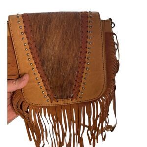 Montana West Women's Hair On Hide Cowhide Fringe Crossbody Suede Leather NWT