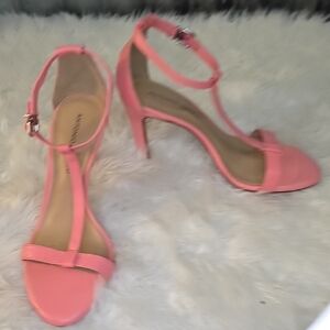 Elegant pink T-strap heels by ANTONIO MELANI. Perfect for adding a pop of color.