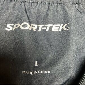This Sport Tek Men's Polyester Pullover Windbreaker in size Large is a must-have for any sports enthusiast. The black jacket features a v-neck and long sleeves with a pullover closure, making it perfect for any outdoor activity. The outer shell is made of 100% polyester and the jacket is lined with side zip pockets.