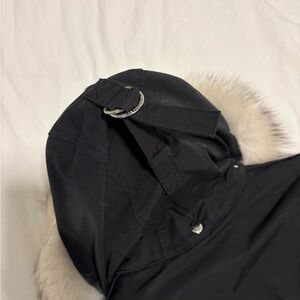 Stylish black ski jacket featuring a plush fur hood. Perfect for cold weather adventures.