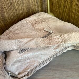Vintage Y2K Pinky Miami Faux Snakeskin Textured Fabric Shoulder Bag Beige 90s