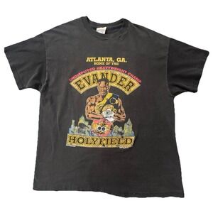 Keywords: Evander Holyfield, Boxing, Heavyweight Champion, Vintage T Shirt, Atlanta Georgia, 1990s, Sports Memorabilia, Graphic Print, Streetwear, Retro Apparel, Fighter T Shirt, Collectible Tee, Champion Shirt