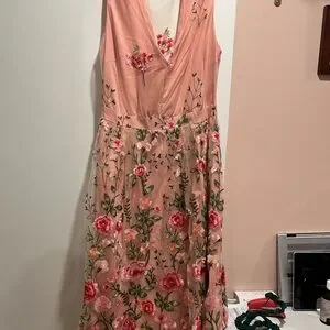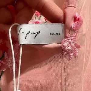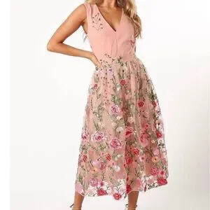 Petal and Pup - Wonderland floral embroidery midi dress. Elegant pink midi dress with floral embroidery. Sleeveless design. Perfect for special occasions. Size Large. New with tags: this dress will probably fit better a US size 10 or 12 as it was too large for me. :) offers welcome