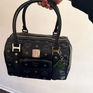 MCM Black Satchel with Silver Accents