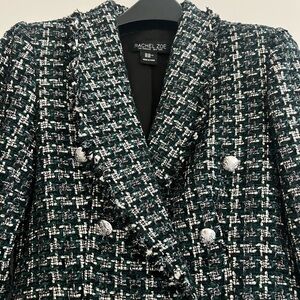 Rachel Zoe Tweed Blazer Forest Green Black