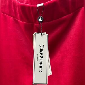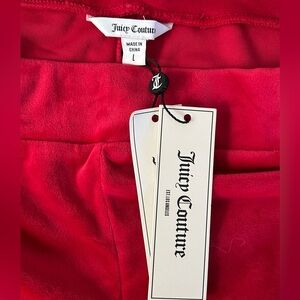 NWT Juicy Couture Red Velour Track Pants with rhinestone logo on left hip in Size L