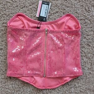 PrettyLittleThing Hot Pink Sequin Boned Bandeau Corset Crop Top NWT Size 0