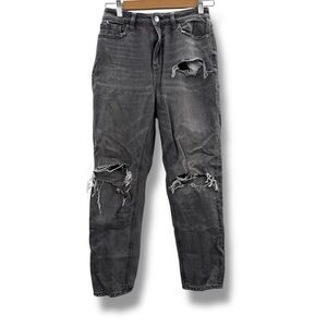 American Eagle Mom Jeans Distressed High Rise Charcoal Gray Wash Jeans 0 Short