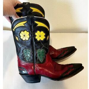 Stallion Women’s Custom Red Yellow Floral Leather Peewee Cowgirl Boots Cowboy Western Rodeo Line Dance Super Rare Hard to Find Luxury *Modeled photo is AI generated based on my photo of the actual item*