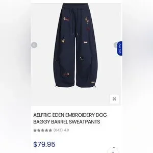 AELFRIC EDEN EMBROIDERY DOG BAGGY BARREL SWEATPANTS