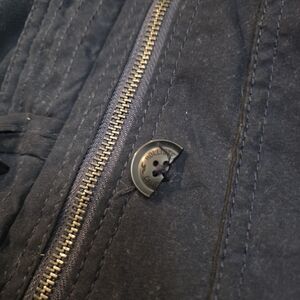 ☆ Good Pre-owned Condition. Please note that one of the buttons on the front closure is chipped and there's soem signs of use on thw cuffs (see photos for detail). The rest of the jacket, including the zipper, lining, and faux fur, is in excellent shape. From a smoke-free home.