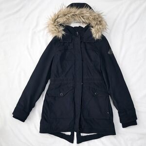 Y2K Navy Hollister Heritage Collection Faux Fur Lined Parka Jacket Faux Fur Hood