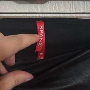 In Faux Leather leggings, you're everyone's asspiration! Designed with the SPANX contoured Power Waistband, these leggings give you a flat gut and GREAT butt. The flattering high-gloss fabric is a total compliment magnet and keeps you ultra-comfortable. TRUE TO SIZE: SPANX fits all products on real women to ensure each product has the optimal fit. If you are unsure of your size, please reference the size chart.