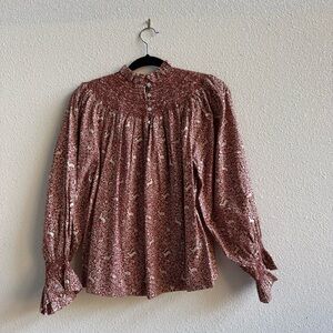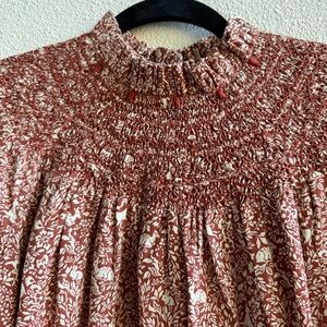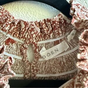 DÔEN Amoret smocked cotton top in the "Prancing Fawn" Size Small