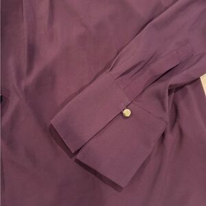 Chic deep purple blouse by Calvin Klein. Features a V-neck and buttoned cuffs. Perfect for elegant occasions.