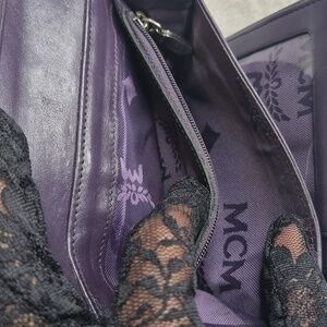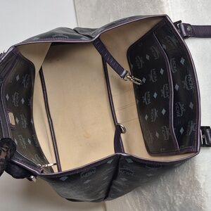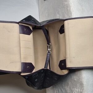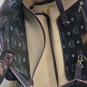 EUC Elegant MCM Princess Lion leather tote bag & wallet. Black with vibrant color blocks. Tote extends in and out. Snap is snappy. Clean with minor pen marks on inside... barely noticeable. Leather, trim and corners ALL GOOD may have minor rub... barely noticeable. Some minor tarnishing on hardware. Perfect for any occasion.
