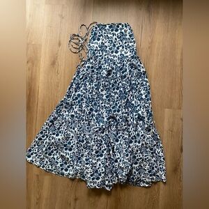 Cara Cara Blue and White Floral Harbour Island Midi Length Dress