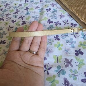 includes the gold wristlet from charming Charlie's, which only has a few barely noticeable marks on the wristlet strap and the glitter express card holder.