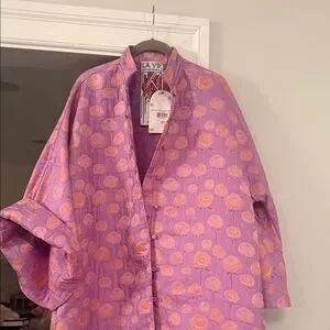 ICONIC LA VIE STYLE HOUSE Purple/Pink Orange Silk Brocade Long Caftan Coat NWT