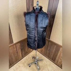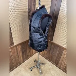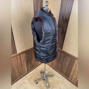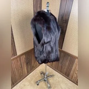 BEAUTIFUL VINTAGE DARK BROWN ALMOST BLACK FOX FUR VEST JACKET COAT LARGE