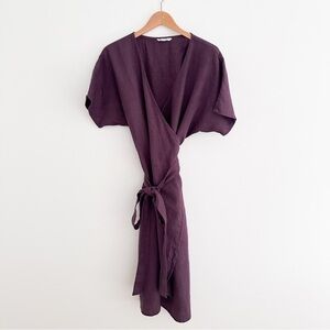 Linenfox 100% Linen Plum Colored Linen Wrap Dress Short Sleeve Size S/M