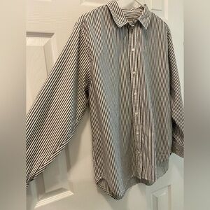 🕜 Everlane | The Must-Have Shirt In Silky Cotton | White/Gray Striped | 14
