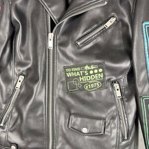 ZARA Sz S Men Faux Leather Patch Digital Expression Black Bike Moto Racer Jacket