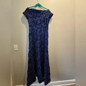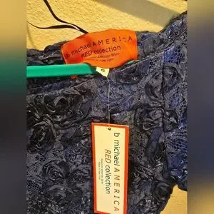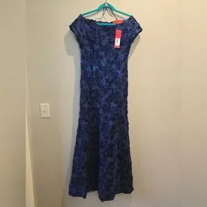 NWT, B Michael America Red Collection Textured Gown Navy Sz 6