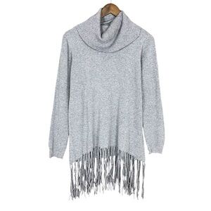 Oliver by Escio | Heather Gray Cowl Neck Tunic Sweater Ribbed Knit Fringe Bottom