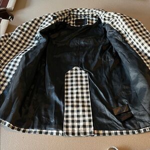 Coach Checkered Trench Coat Black/Ivory White Gingham Rain Coat Double Breasted