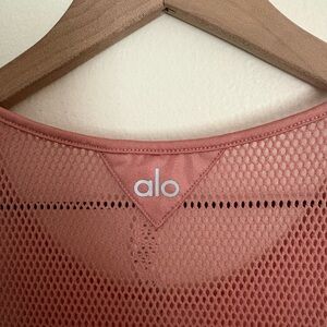 Alo Yoga Lucid Tank Top Size Small Pink Mesh Sheer Breathable Workout Coverup