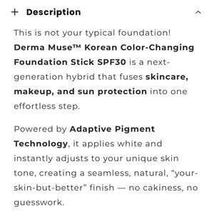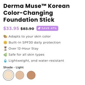 NWT Derma Muse Korean Color Adapting Foundation Stick - Ivory White (Light)